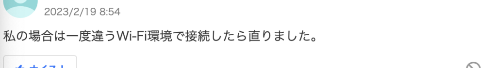 「私の場合は一度違うWi-Fi環境で接続したら直りました。」