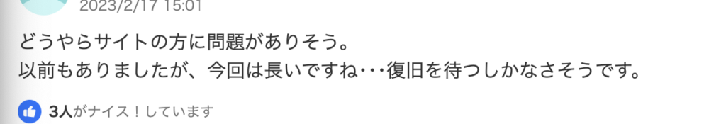 「どうやらサイトの方に問題がありそう。 以前もありましたが、今回は長いですね・・・復旧を待つしかなさそうです」