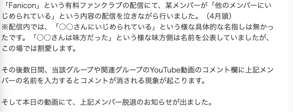 あかねんさんが人間関係で脱退したことからグループ内で不仲やいじめがあった可能性はあるかもしれませんね。