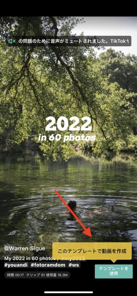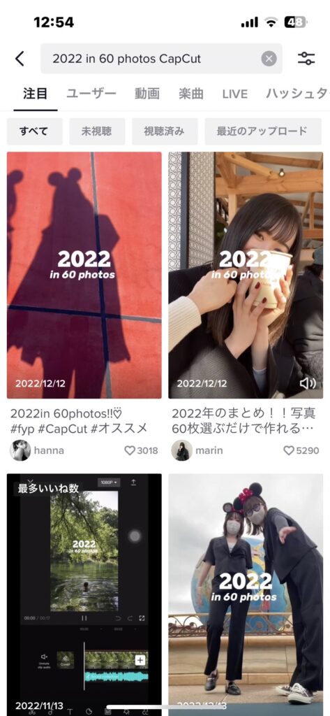 まずはTikTokで2022 in 60 photos CapCutを検索します。