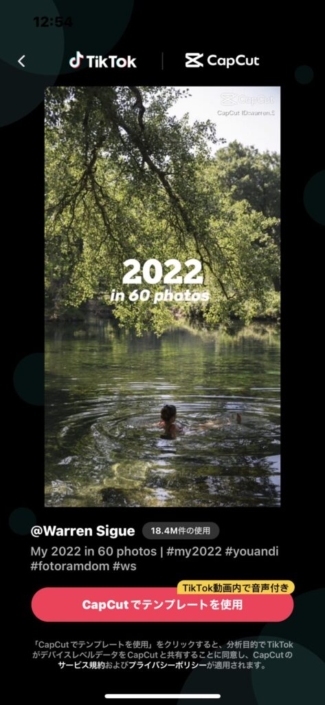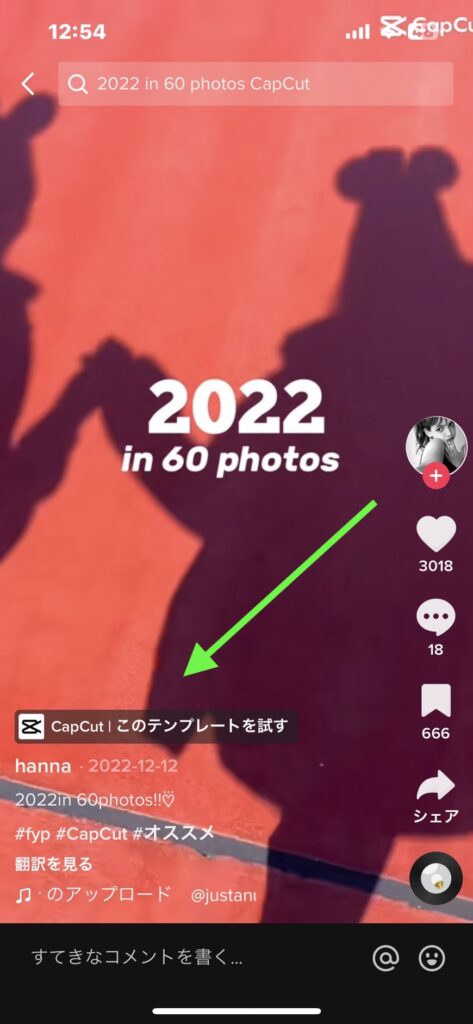 すると、2022 in 60 photos CapCutがたくさん表示されるので一つの動画を開きます。