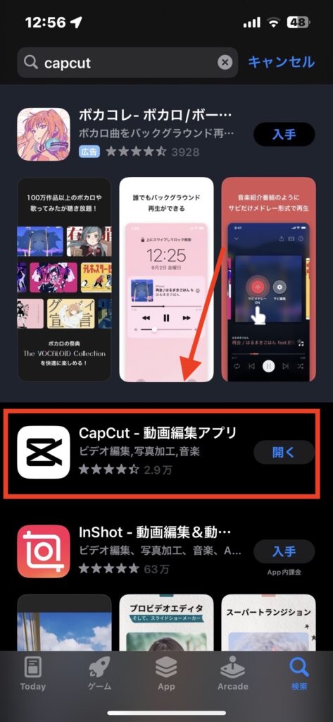 すると、左下に”CapCut このテンプレートを探す”という文字が出てくるので、ここをタップします。