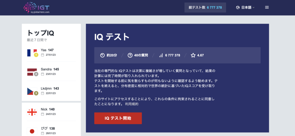 国際IQテストを受けた人の意見を見てみると、