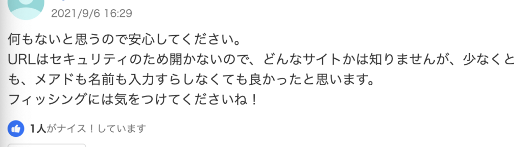 このように特に怪しいサイトであるという記載はありませんでした。