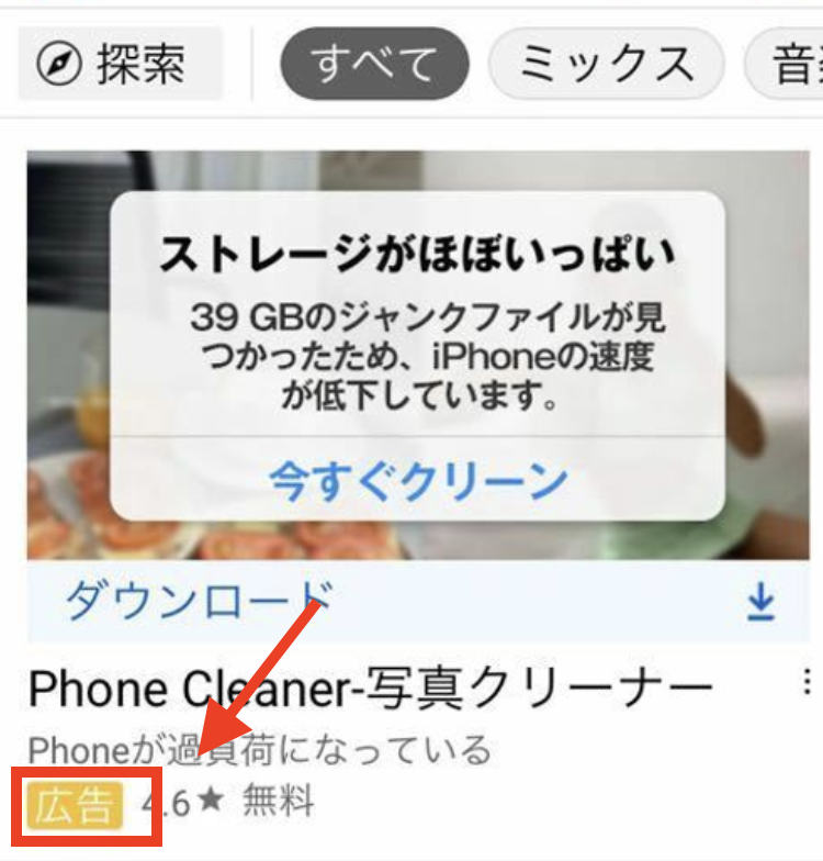なので、スパムメッセージもクリーナーアプリをインストールさせるために掲載料を支払い広告しているわけです。